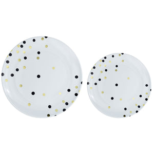 Premium Plastic Plates Hot Stamped with Dots, Boxed multipack 10 x 26cm & 10 x 19cm., Hand wash only, 20 per pack