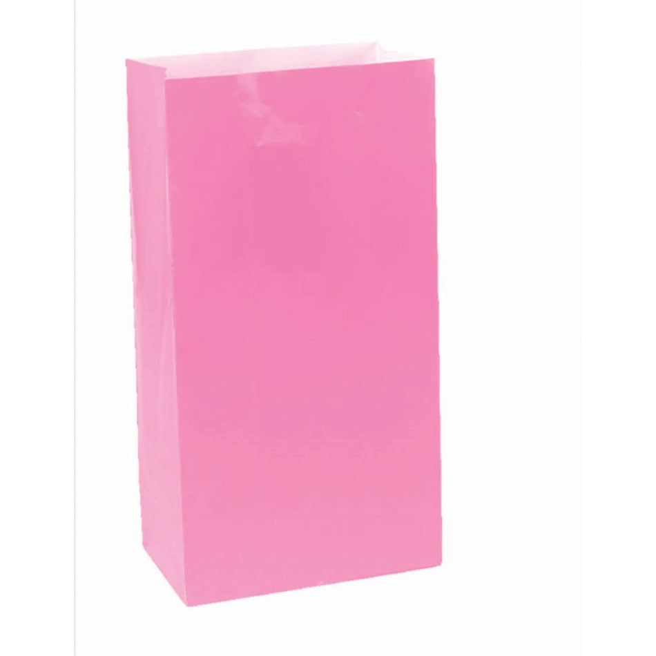 Large Paper Treat Bags Pink, 12 per package, 10in x 5in (25cm x 13cm), Paper