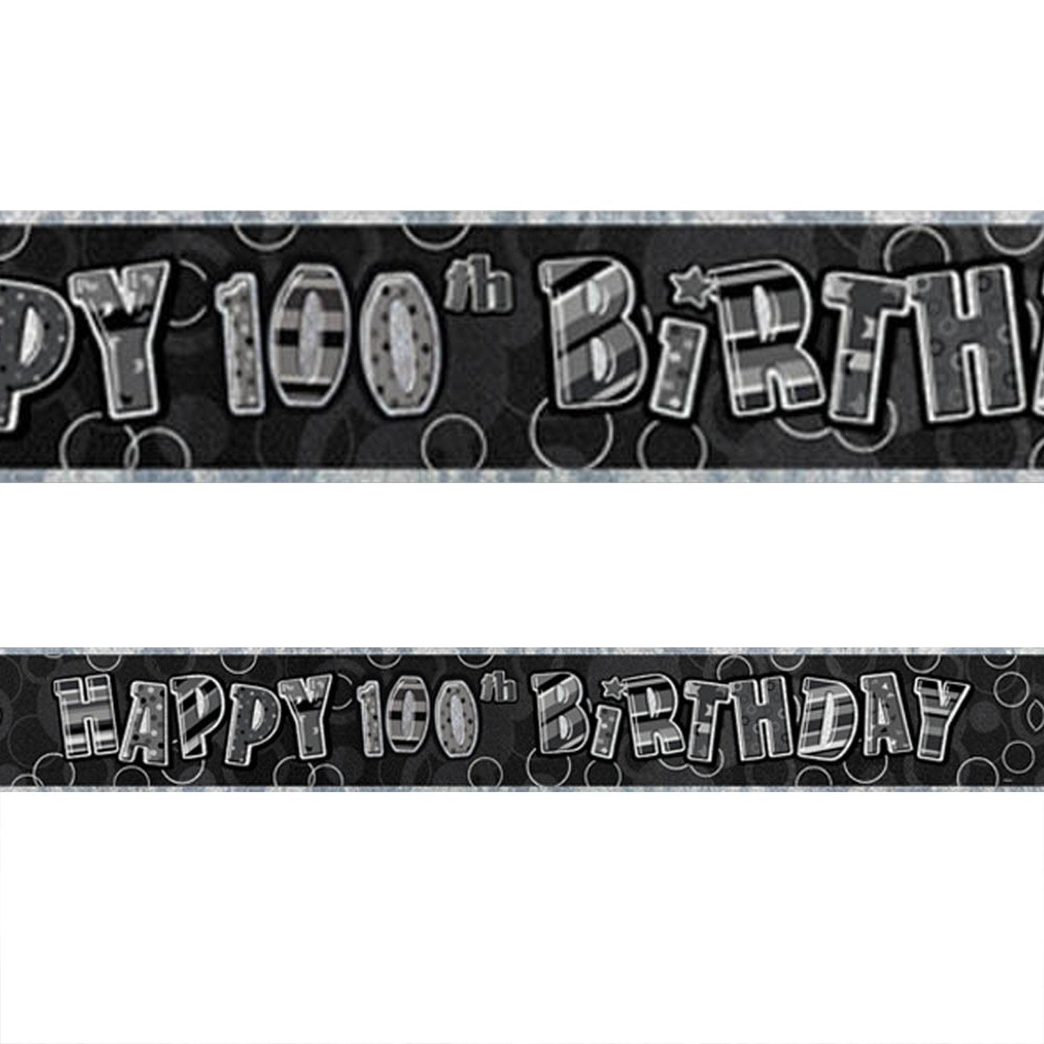 Glitz 100th Birthday Foil Banner 3.6m;This shiny black and silver foil banner measures 3.6m in length by 12.5cm wide