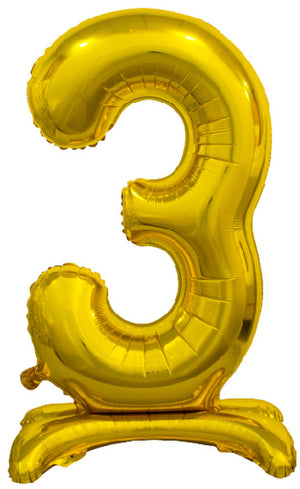 Number 3 Gold Giant Standing Air Filled Foil Balloon 76.2cm Each