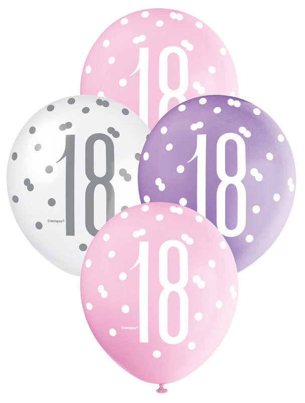 Pink, Purple and White Assorted 18 Latex Balloons 30cm 6pk