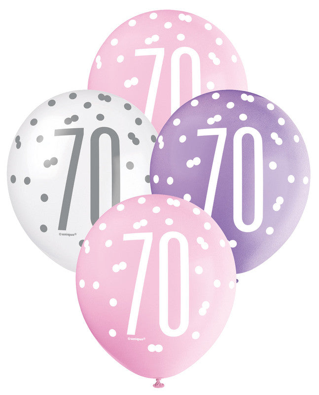 Pink, Purple and White Assorted 70 Latex Balloons 30cm 6pk