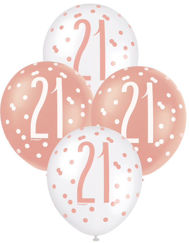 Rose Gold and White Assorted 21 Latex Balloons 30cm 6pk