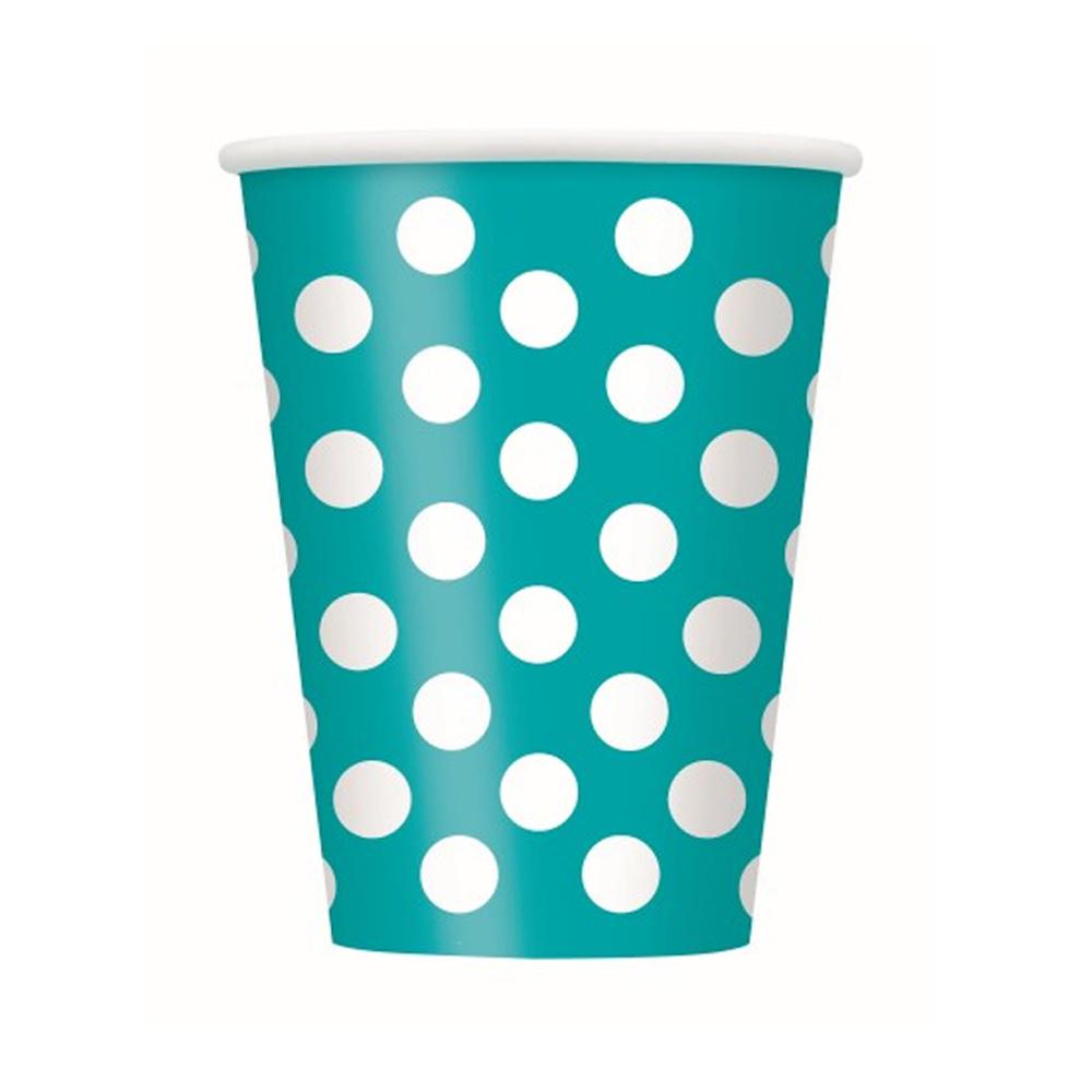Teal Polka Dot Paper Cups 355ml pack of 6